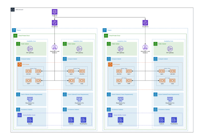 - Full regional failover support: With full replication of each region, this architecture ensures high uptime and low customer disruption in the event of an AWS region going down.